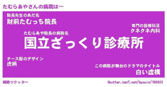| 肩書あだ名 | 『たむらあや社長令嬢』『たむらあや塾長』 |