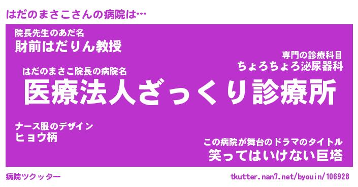 | 肩書あだ名 | 『はだのまさこ御曹司』 |