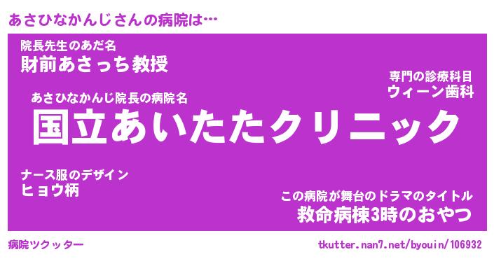 | ヘコむあだ名 | 『あさっふぃ~』『酢こんぶ』 |
