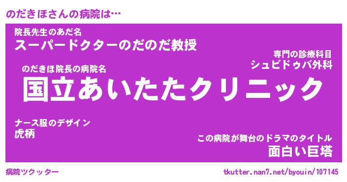 | 2回繰り返すあだ名 | 『のだのだ』『ののだだ』『いらいら』 |