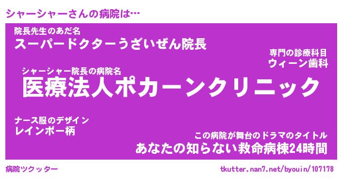 | 2回繰り返すあだ名 | 『シャシャ』『シシャャ』『ぬれぬれ』 |