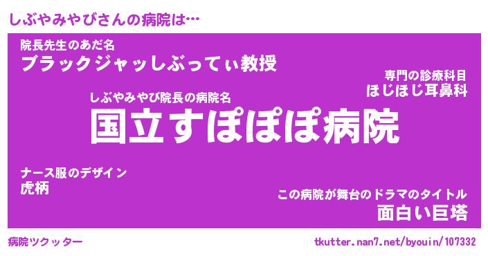 | ヒーロー風カッコイイあだ名 | 『スーパーシブヤミヤビ』『天弓騎士シブ』 |