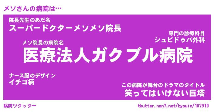 | 2回繰り返すあだ名 | 『メソメソ』『メメソソ』『ぬぷぬぷ』 |
