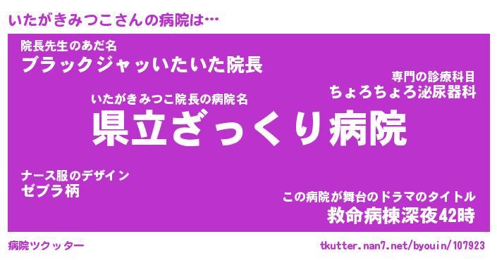| 伝説のあだ名 | 『不死鳥のスナイパーいたがきみつこ』 |