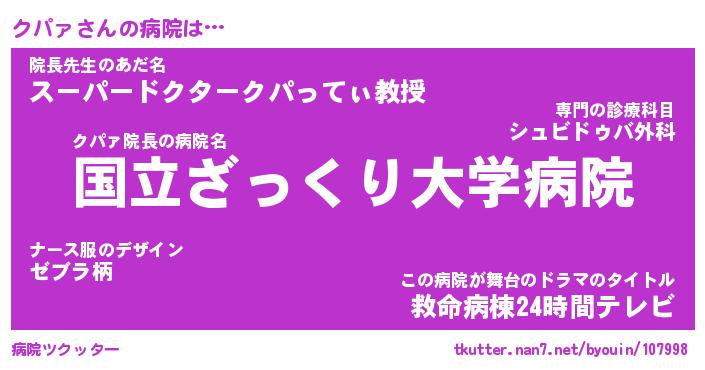 | ピコ太郎風あだ名 | 『クコ八郎』『ピク史郎』『クパ六郎』 |