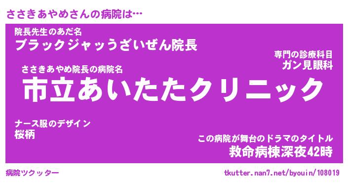 | 肩書あだ名 | 『ささきあやめ御曹司』 |
