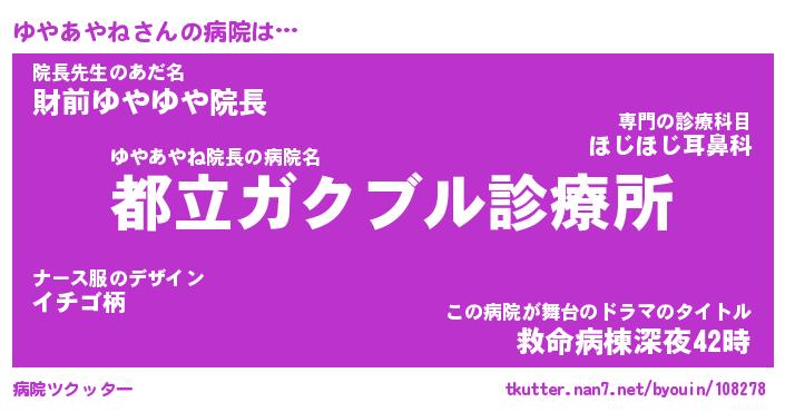 | ヘコむあだ名 | 『ゆやにゅー』『酢こんぶ』『ゆやを』 |