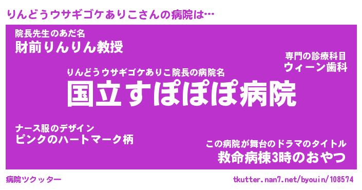 | 伝説のあだ名 | 『伝説のスナイパーりんどうウサギゴケありこ』 |