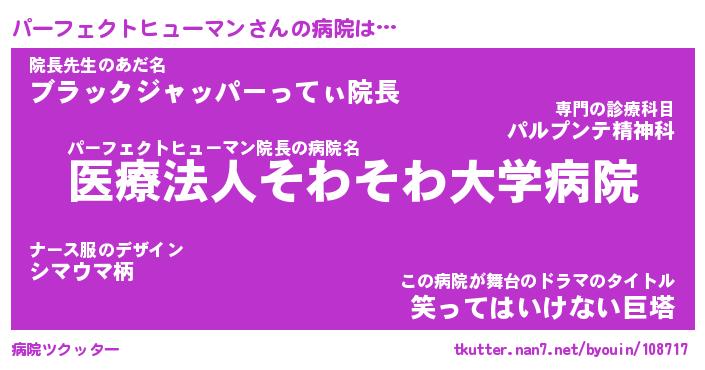 | ツイッター | パーフェクトヒューマンさんのツイッターID『fukuyoka_star』 |