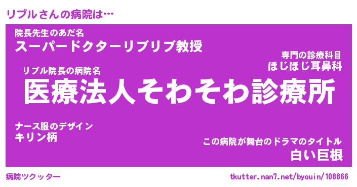 | ヘコむあだ名 | 『リブふぇ~』『つくし』『リブを』 |