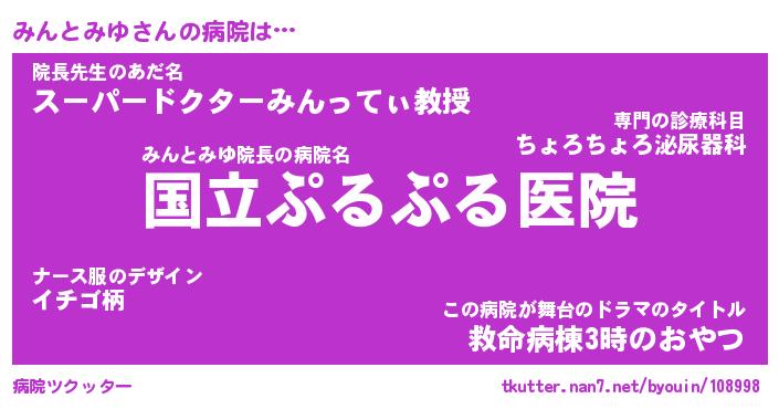 | ヘコむあだ名 | 『みんにゅー』『つくし』『みんを』 |