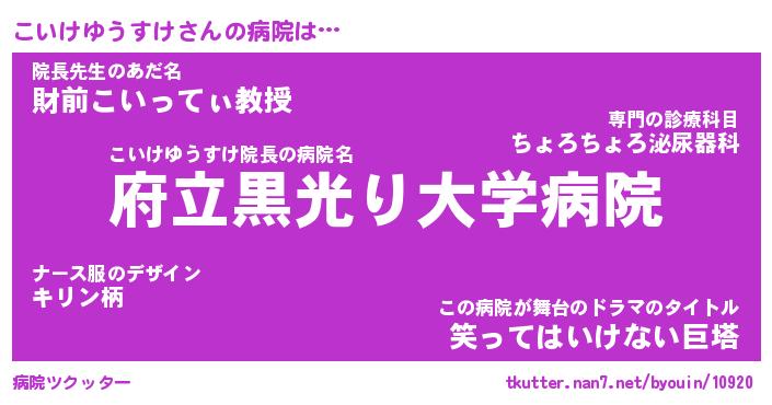 | 男性向けラノベタイトル風あだ名 | 『こいけゆうすけの憂鬱』 |