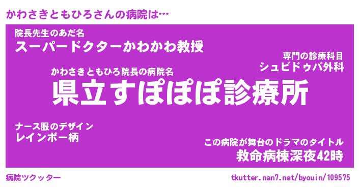 | ヒーロー風カッコイイあだ名 | 『スーパーカワサキトモヒロ』 |