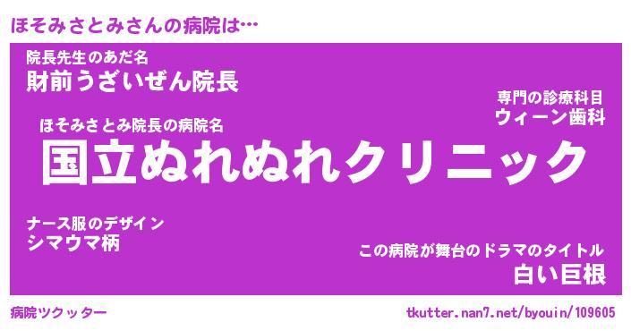 | 胡散臭い通販商品みたいなあだ名 | 『必ず成功する水晶球…その名も「ほそみさとみ」』 |