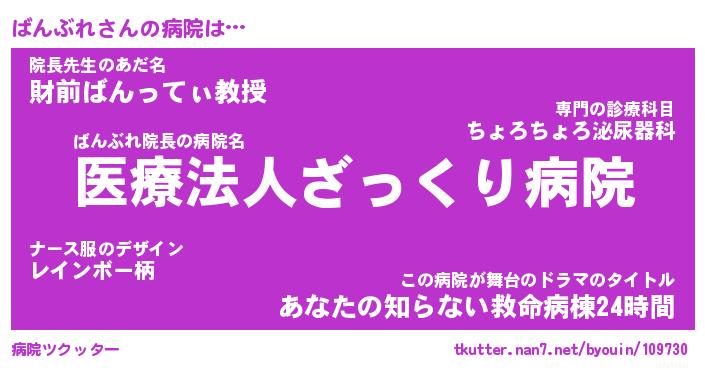 | 意味不明あだ名 | 『ペロリンばんぶれ』『永久保存ばんぶれ』 |