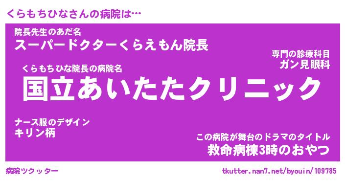 | 伝説のあだ名 | 『伝説のスナイパーくらもちひな』 |