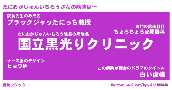 | 男性向けラノベタイトル風あだ名 | 『たにおかじゅんいちろうの憂鬱』 |