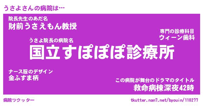 | ポケモン風あだ名 | 『ウサチュウ』『ウサヨダネ』 |