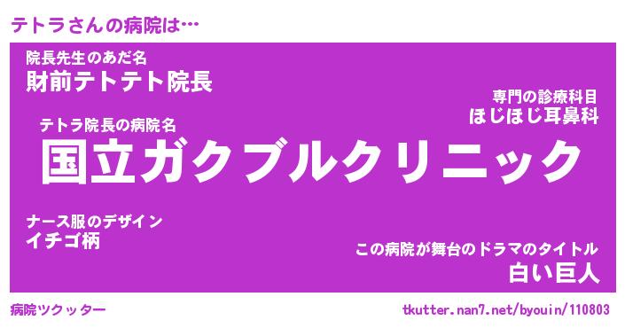 | ヘコむあだ名 | 『テトにゅー』『つくし』『テトお』 |