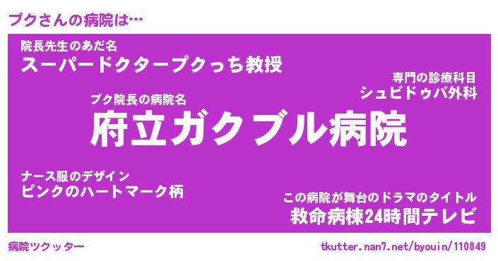 | 2回繰り返すあだ名 | 『プクプク』『ププクク』『ねちねち』 |
