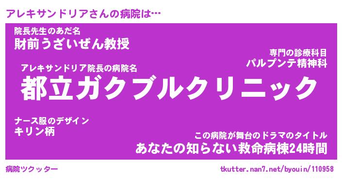 | 欧米人風あだ名 | 『マイケルアレキサンドリア』 |