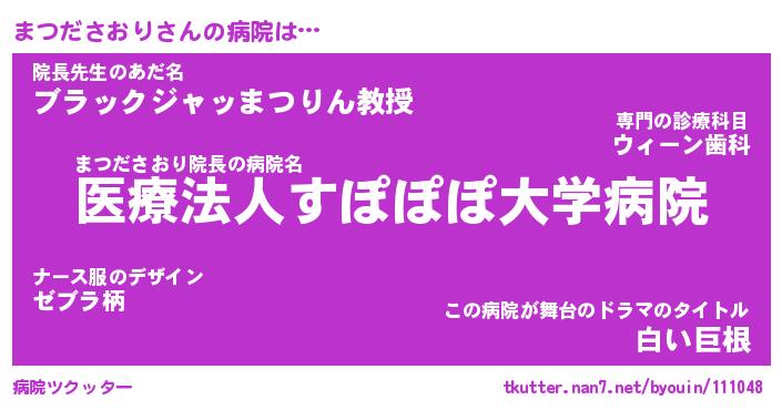 | 2回繰り返すあだ名 | 『まつまつ』『ままつつ』『いそいそ』 |