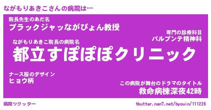 | 伝説のあだ名 | 『不死鳥のスナイパーながもりあきこ』 |