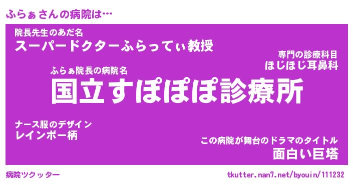 | 2回繰り返すあだ名 | 『ふらふら』『ふふらら』『なあなあ』 |