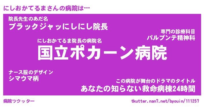 | 男性向けラノベタイトル風あだ名 | 『にしおかてるまの憂鬱』 |