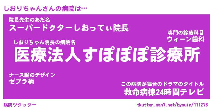 | 2回繰り返すあだ名 | 『しおしお』『ししおお』『ごみごみ』 |
