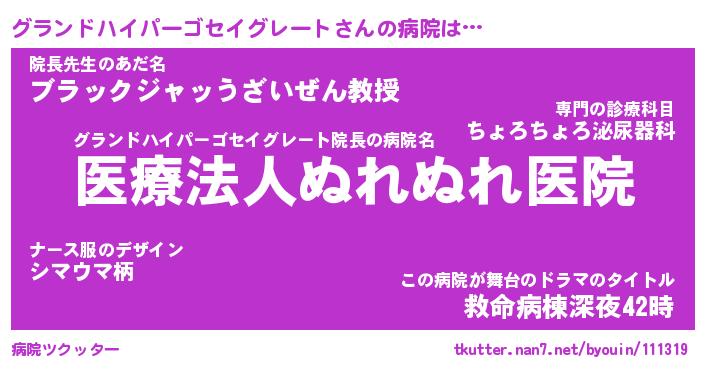 | ツイッター | グランドハイパーゴセイグレートさんのツイッターID『fukuyoka_kun』 |