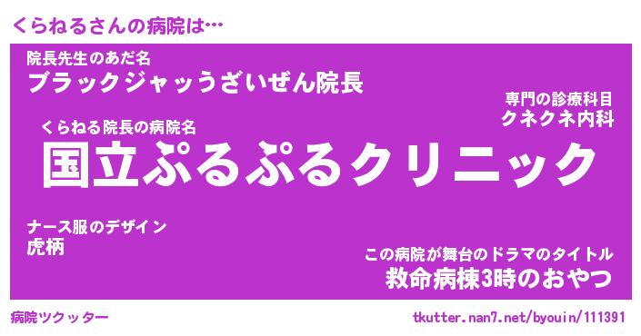 | 男性向けラノベタイトル風あだ名 | 『くらねるの憂鬱』 |