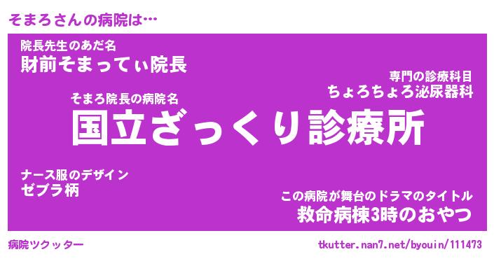 | ピコ太郎風あだ名 | 『ソコ六郎』『ピソ四郎』『ソマ四郎』 |