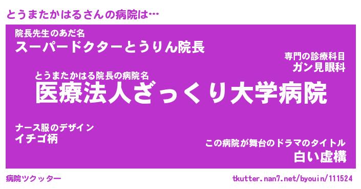 | 胡散臭い通販商品みたいなあだ名 | 『億万長者になれる霊験あらたかなお札…その名も「とうまたかはる」』 |