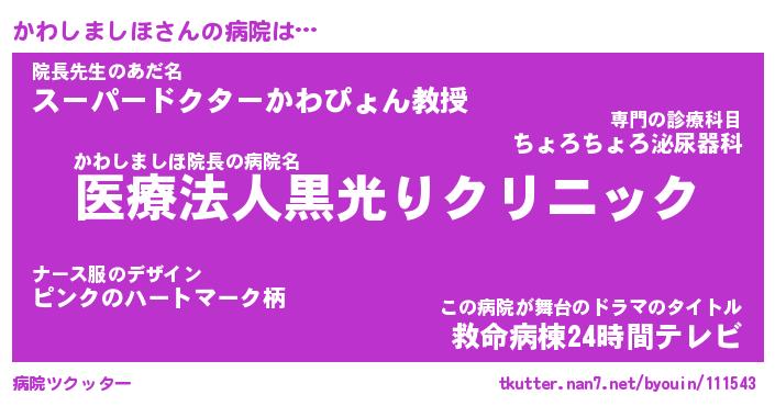 | 胡散臭い通販商品みたいなあだ名 | 『億万長者になれるブレスレット…その名も「かわしましほ」』 |