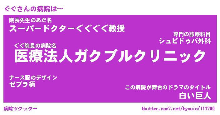 | 2回繰り返すあだ名 | 『ぐぐぐぐ』『ぐぐぐぐ』『うねうね』 |
