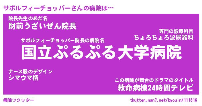 | 男性向けラノベタイトル風あだ名 | 『サボルフィーチョッパーの憂鬱』 |