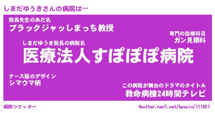 | ヘコむあだ名 | 『しまもー』『なまこ酢』『しまっぺ』 |
