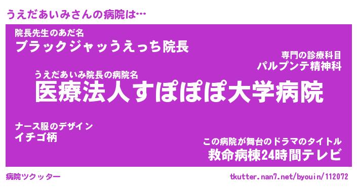 | ヘコむあだ名 | 『うえもー』『豆乳』『うえ太郎』 |