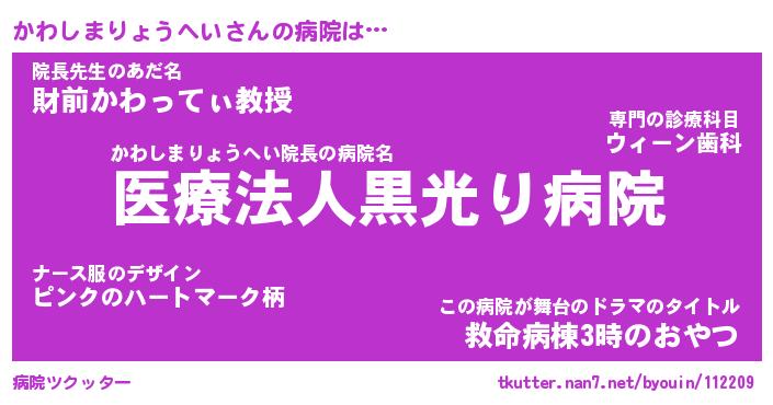 | 胡散臭い通販商品みたいなあだ名 | 『億万長者になれるブレスレット…その名も「かわしまりょうへい」』 |