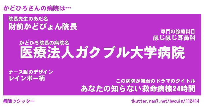 | ヘコむあだ名 | 『かどにゅー』『レバニラ』『かどを』 |