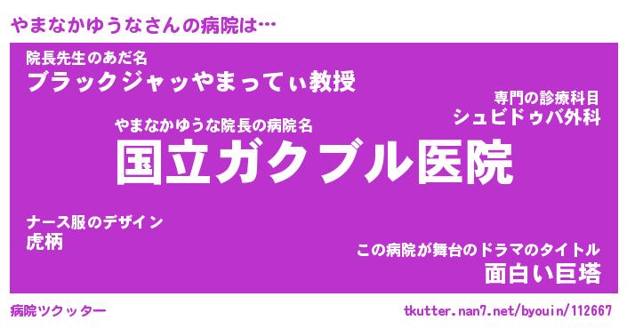 | 男性向けラノベタイトル風あだ名 | 『やまなかゆうなの憂鬱』 |