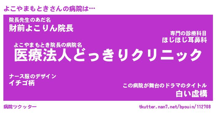 | 肩書あだ名 | 『よこやまもとき御曹司』 |