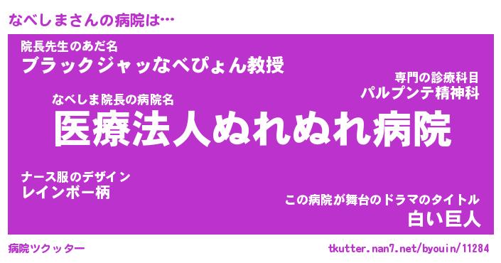 | 2回繰り返すあだ名 | 『なべなべ』『ななべべ』『うねうね』 |