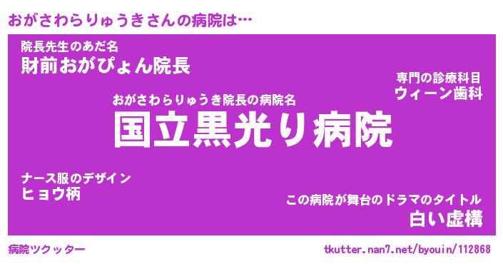 | 男性向けラノベタイトル風あだ名 | 『おがさわらりゅうきの憂鬱』 |
