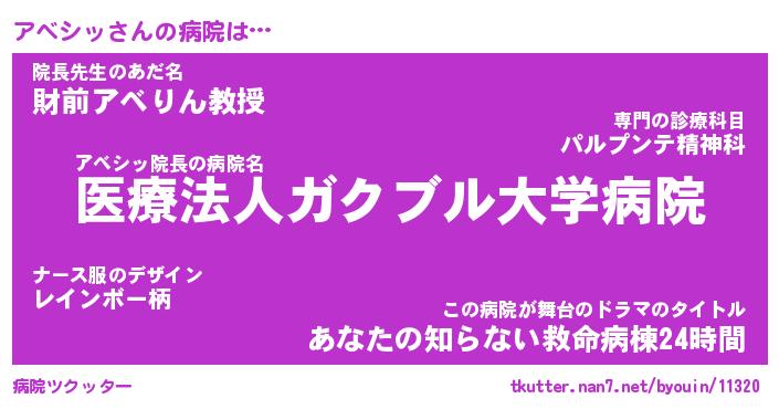 | ヘコむあだ名 | 『アベにゅー』『酢こんぶ』 |