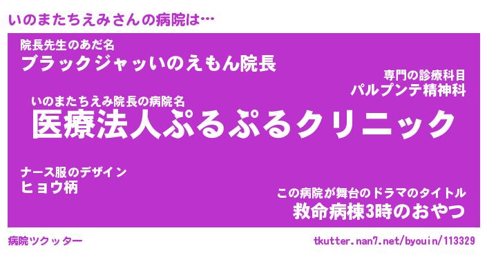 | 恥ずかしいあだ名 | 『プリティーいのまたちえみ』『いのちん』 |