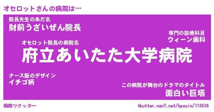 | 男性向けラノベタイトル風あだ名 | 『オセロットの憂鬱』 |