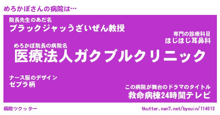 | 2回繰り返すあだ名 | 『めろめろ』『めめろろ』『がみがみ』 |