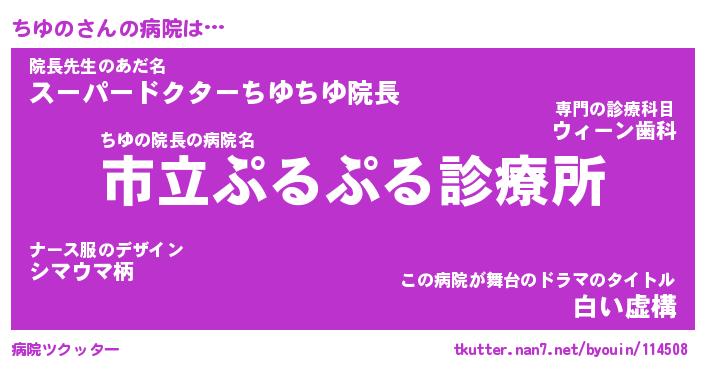 | 2回繰り返すあだ名 | 『ちゆちゆ』『ちちゆゆ』『ぬらぬら』 |